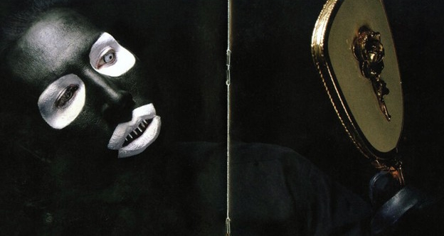 The artwork also features many portraits of Manson in various makeups. Though these images are rather generic and it's difficult to say something informed about them, I can offer some personal interpretation: