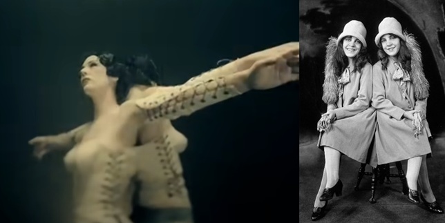 The conjoined women is an artistic representation of conjoined twins. In the 19th century, it was very common for circuses to feature freak shows, where human oddities were presented to the audience to gawk at. Conjoined twins are one example of the kinds of people that were featured. One famous example of that can be seen in the movie Freaks, which is about a travelling circus freak show that features conjoined twins in the roster. The women who played the conjoined twins were actual conjoined twins themselves, Daisy and Violet Hilton, who were born joined by the hip and buttocks. In the early 20th century, they worked as vaudeville performers, singing, playing instruments, and dancing. At the height of their career, they were the highest paid act in vaudeville.