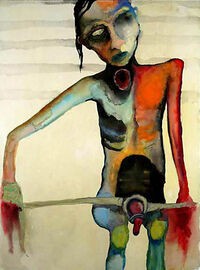 Everybody's reaction is that it's a self-portrait, but it's actually of a friend of mine who used to be my assistant. His name is Jonathan (Pavesi). He was a really weak-willed kid who was probably eighteen when I met him, and I put him through him hell. He had to wash paint out of the crack of my ass and clean up my vomit. At one point, when he was working with me, he would get really mad because I would have physical altercations with him when I was coming on and off stage sometimes. I told him I would pay him 100 dollars if I ever hit him unintentionally, and then I got drunk one time and laid 500 dollars on the table and beat the shit out of him.