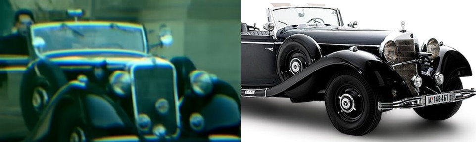 The car Manson arrives in is the 1939 Mercedes 770K Grosser, a luxury car that was used by Hitler and high-ranking officials in the Nazi party.