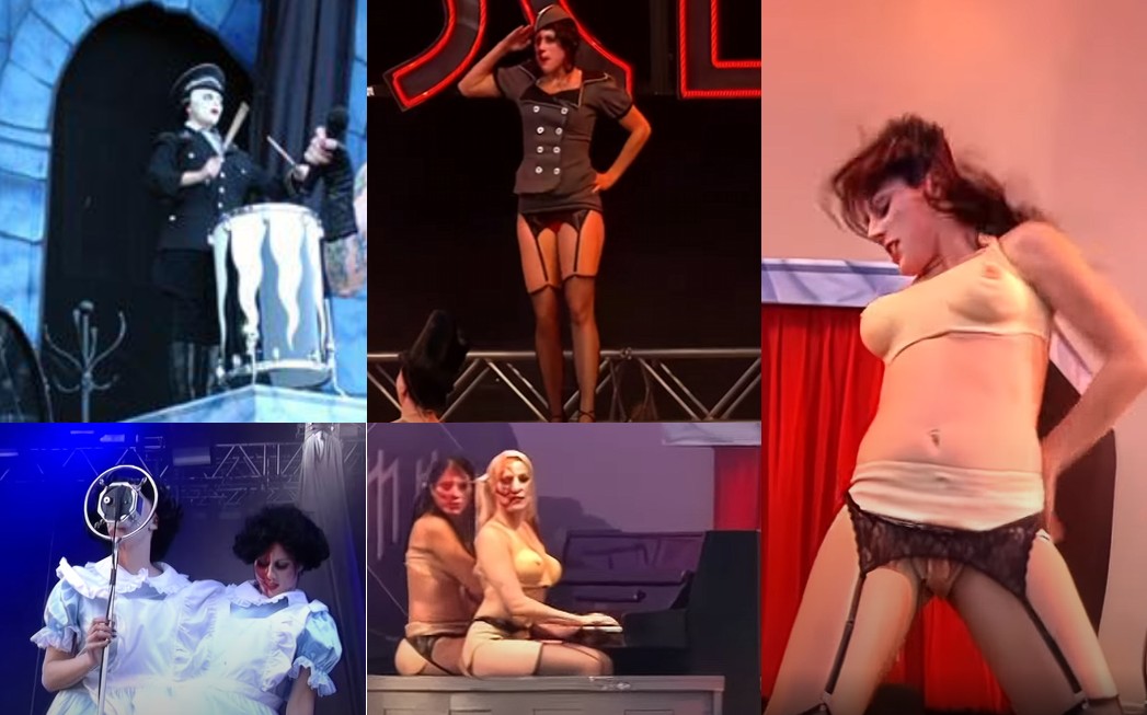 Two dancers, Andrea Sikie and Vanessa Huntoon, were featured heavily in the show, in a variety of roles: playing Hitler Jugend styled drums while wearing Nazi uniforms during the Nuremberg section of the show, recreating the military pin-up Rockettes from the mOBSCENE music video, playing Siamese twins during Para-Noir, playing piano during The Golden Age of Grotesque, and doing sexy dances in the panties and bras made to look like exposed breasts and genitals during the burlesque section of the show.